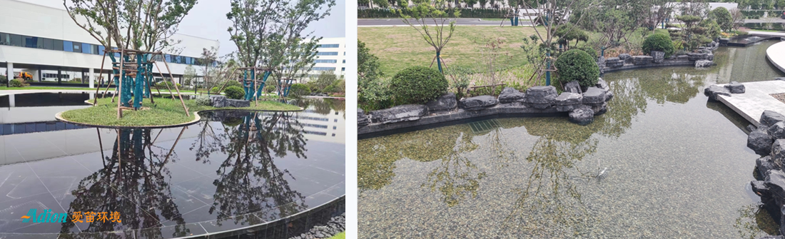 本項(xiàng)目是南通富創(chuàng)公司新建廠區(qū)的景觀水治理,該水體為封閉型水體,流動性較差,池底混凝土澆筑,缺少水生植物,將來準(zhǔn)備養(yǎng)觀賞魚。景觀池水量約為1150立方米,水深約1米。