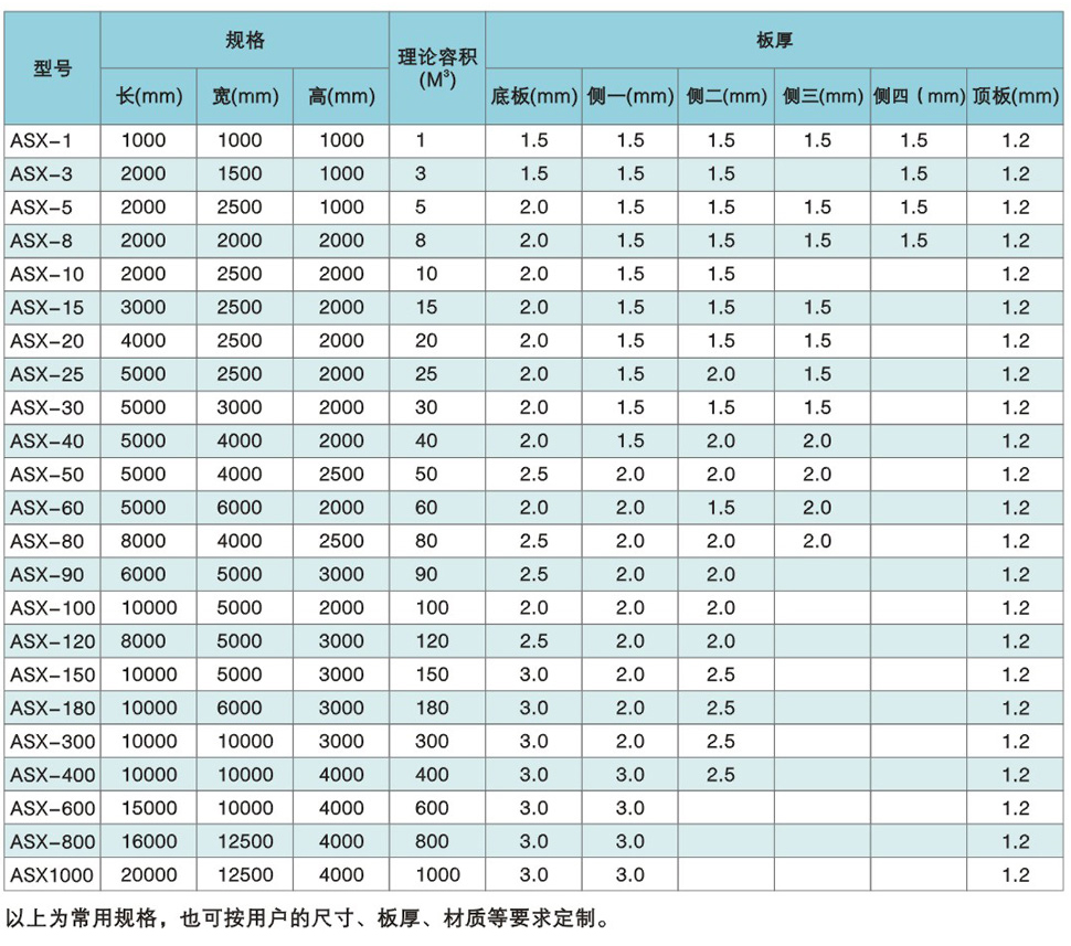 技術(shù)參數(shù) ASX型組合式不銹鋼水箱尺寸表