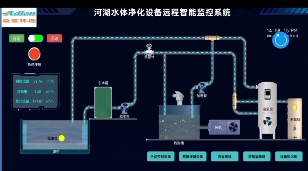 A-H河湖水體凈化機(jī),分散布置??山Y(jié)合水質(zhì)情況,靈活調(diào)整設(shè)備的運(yùn)行時(shí)長。用戶可選配帶物聯(lián)網(wǎng)云平臺(tái)功能,能通過手機(jī)對(duì)設(shè)備進(jìn)行遠(yuǎn)程監(jiān)視、設(shè)定、控制。