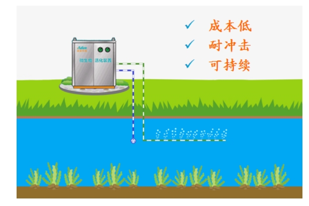 上海愛笛環(huán)境公司在多年治水經(jīng)驗(yàn)的基礎(chǔ)上,吸收國內(nèi)國際的先進(jìn)的技術(shù),研發(fā)出了全新的“A-H復(fù)合型河湖水體凈化機(jī)”,該設(shè)備融合了“微納米增氧”和“土著微生物激活”兩種技術(shù),在對(duì)水體進(jìn)行高效增氧的同時(shí),將經(jīng)過設(shè)備強(qiáng)化激活的高活性本土微生物投加到水體中,使水體和底泥中微生物菌群得到快速的繁殖,降解水體中的有機(jī)污染物,最終使水體得到有效凈化。該設(shè)備具有效果好、投資省、運(yùn)行費(fèi)用低、維護(hù)方便等特點(diǎn)。該產(chǎn)品是上海愛笛自主研發(fā)的技術(shù),經(jīng)多條河道應(yīng)用,效果良好。