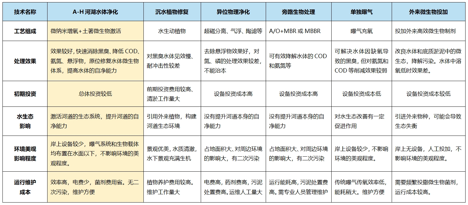 A-H河湖水體凈化技術(shù)與其他技術(shù)的比選