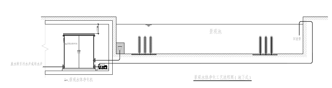 設(shè)備采用不銹鋼一體化結(jié)構(gòu),布置在湖邊的機(jī)坑內(nèi)(原有),由原有的進(jìn)水管將湖水引入設(shè)備中進(jìn)行處理,再由回水泵將景觀出水提升到出水管中,出水管在湖中設(shè)有多個(gè)出水口,將出水返回到景觀湖中,實(shí)現(xiàn)水體的循環(huán)凈化。