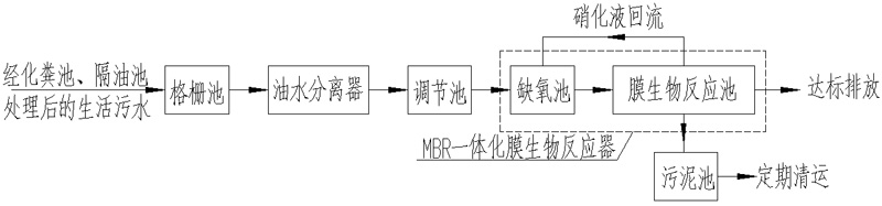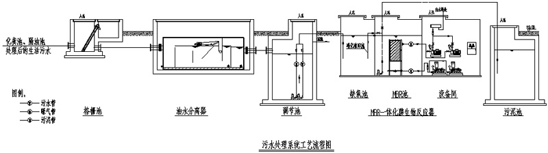 油水分離器可布置在室外地下,一體化污水理設備(MBR一體化膜生物反應器)可采用半地地埋安裝方式。如下圖所示: